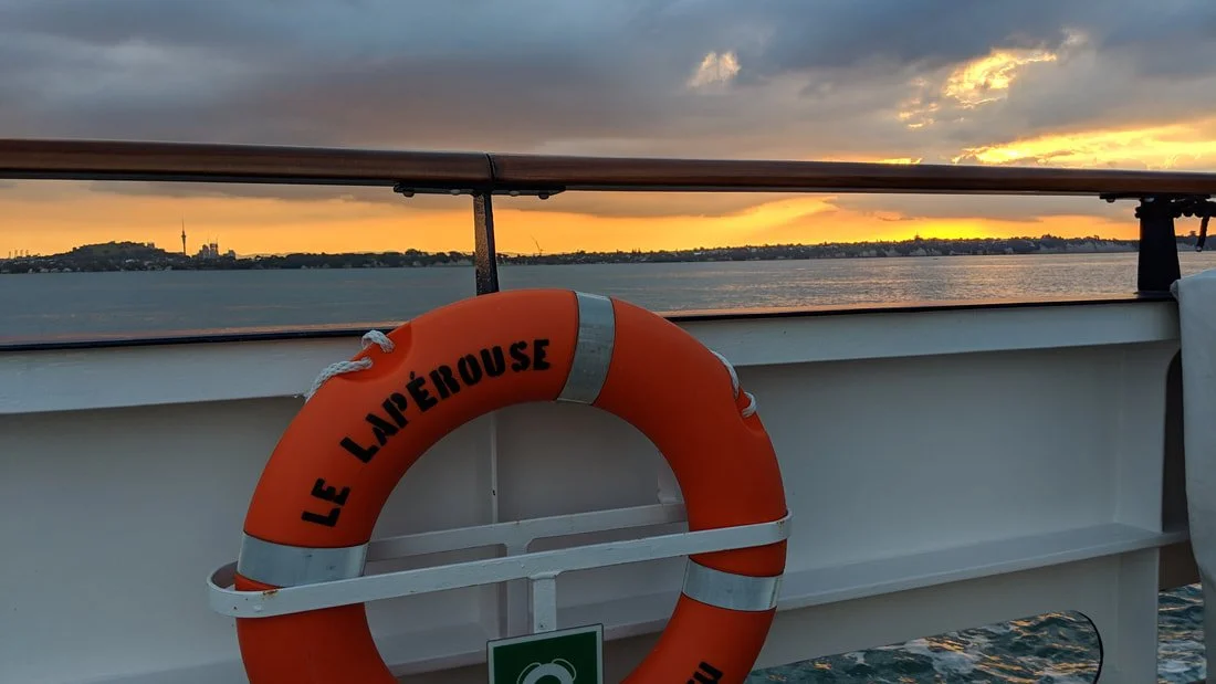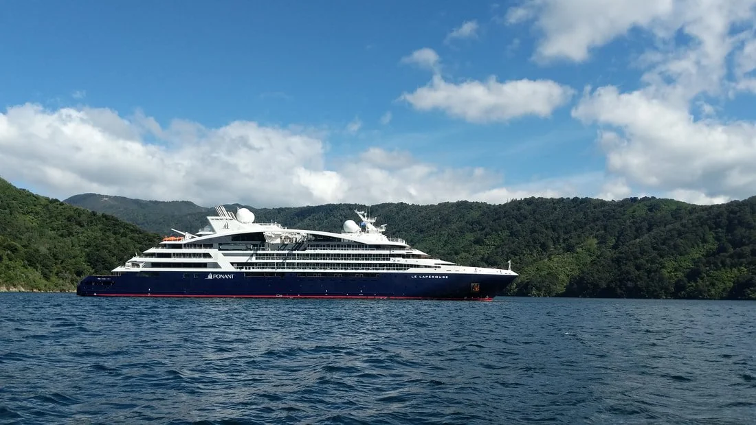 The 184-passenger Le Laperouse sits in the bay in Picton on a sunny day awaiting our return after another series of adventures.