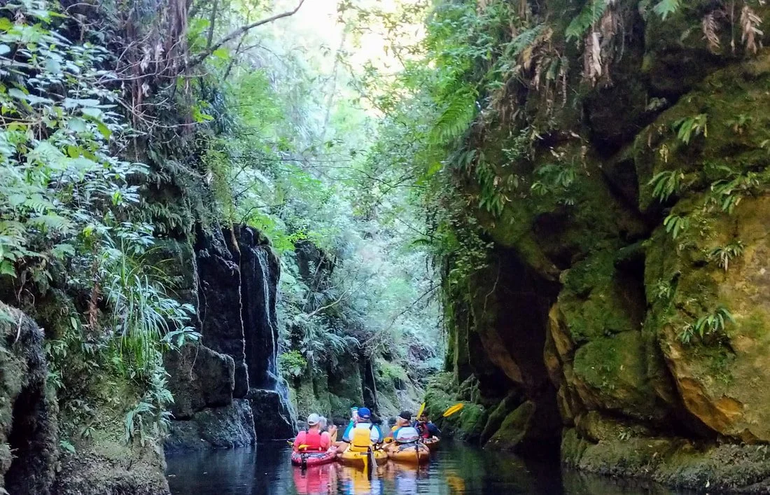 After a morning bike ride, we settled into kayaks and found this secluded wonderland during our port stop in Tauranga.