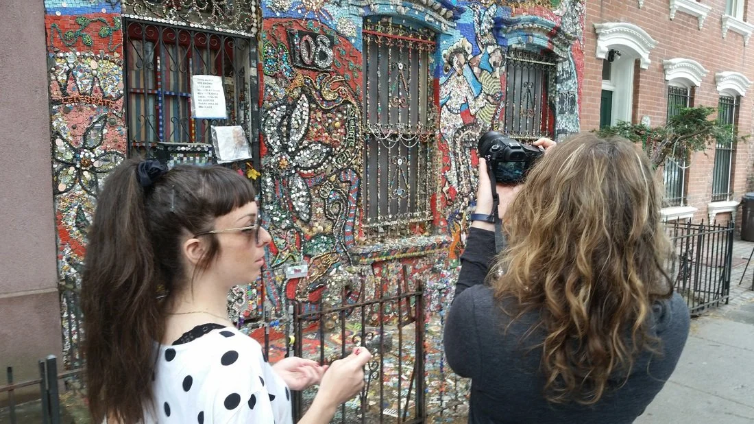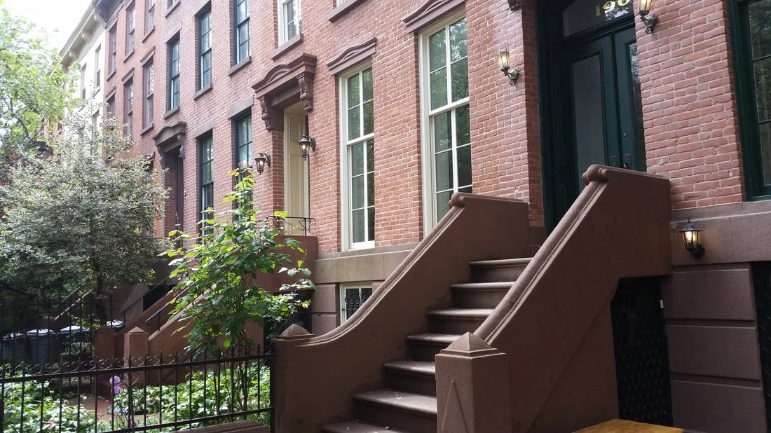 The streets are relatively serene compared with Manhattan, and we spot people out jogging, pushing strollers, walking pooches and sipping coffees on brownstone stoops. Making our way down one tree-lined street, I can spot our first official stop.
