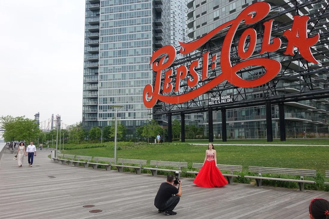 In Queens, we venture through Long Island City and to the waterfront, which again provides fine vistas of the skyline. Queens is more of a blue-collar city, not nearly as attractive as Brooklyn, but with certain charms. We are here to check out the famed Pepsi sign. Disclaimer: We are a devout Coca-Cola family, but that doesn't prevent me from stopping for a few pictures.