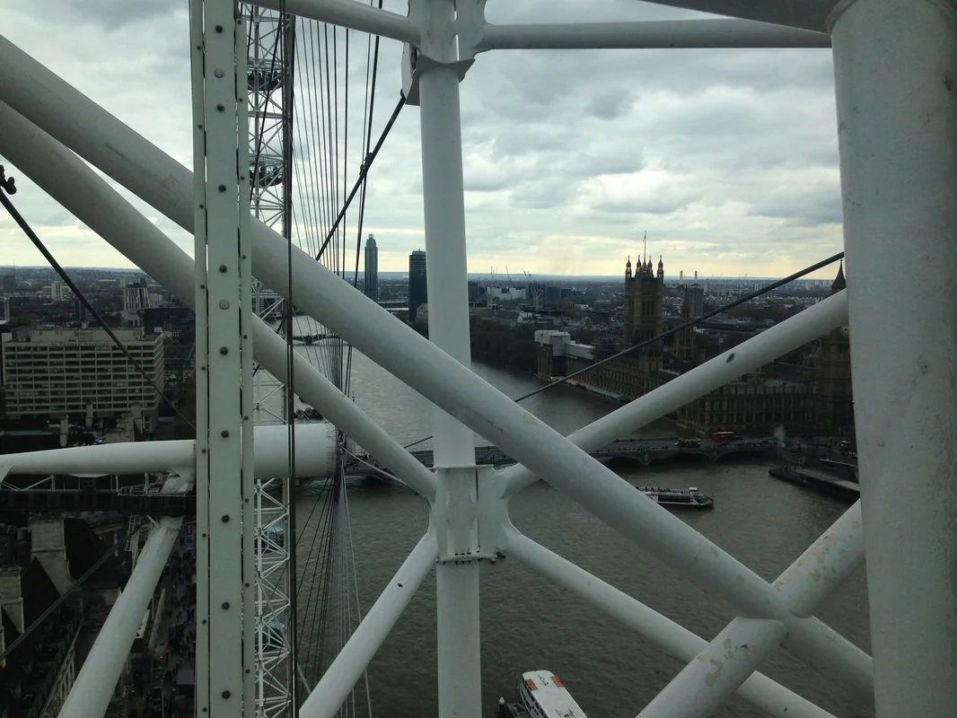 On our day, the sky was almost completely white with clouds. I am sure the views are much more inspiring with blue skies and sunshine, but we enjoyed seeing all the buildings lining the river and off in the distant reaches on London. You will be right across from Big Ben and Parliament Square, offering the most iconic sightings from way up top.