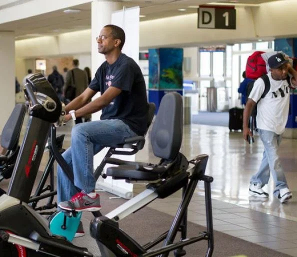 Philadelphia, for example, offers a variety of exercise bikes. It also has created a fitness zone, with other low-impact equipment that is moved around the concourse.
